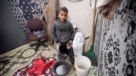 Eight-year-old Majed is calm and focused as he bakes bread in a makeshift tent in the south of the Gaza Strip. Despite growing up under blockade, repeatedly exposed to violence, nothing could have prepared him for this desperate existence.